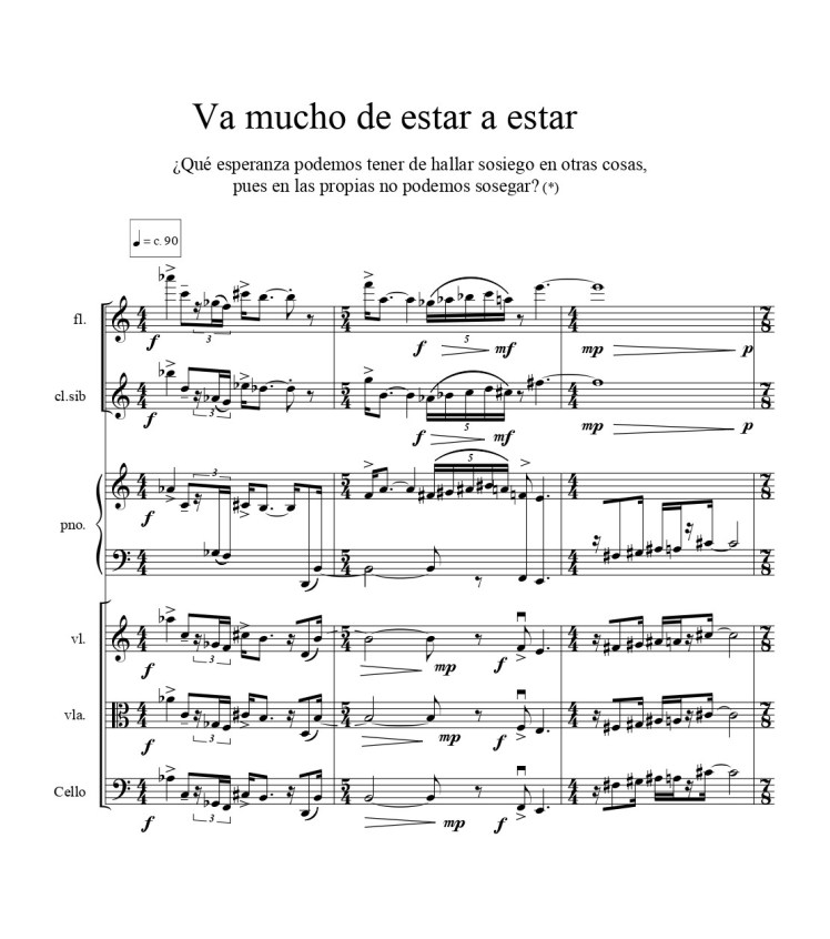 Como éste, otros textos dan impulso a la música de “Va mucho de estar a estar” (p.15, id.). La aparente contradicción encerrada en la frase que se corresponde con el título da pie a la dualidad en lo musical, en la búsqueda de una significación que solamente encuentra sentido en uno mismo.